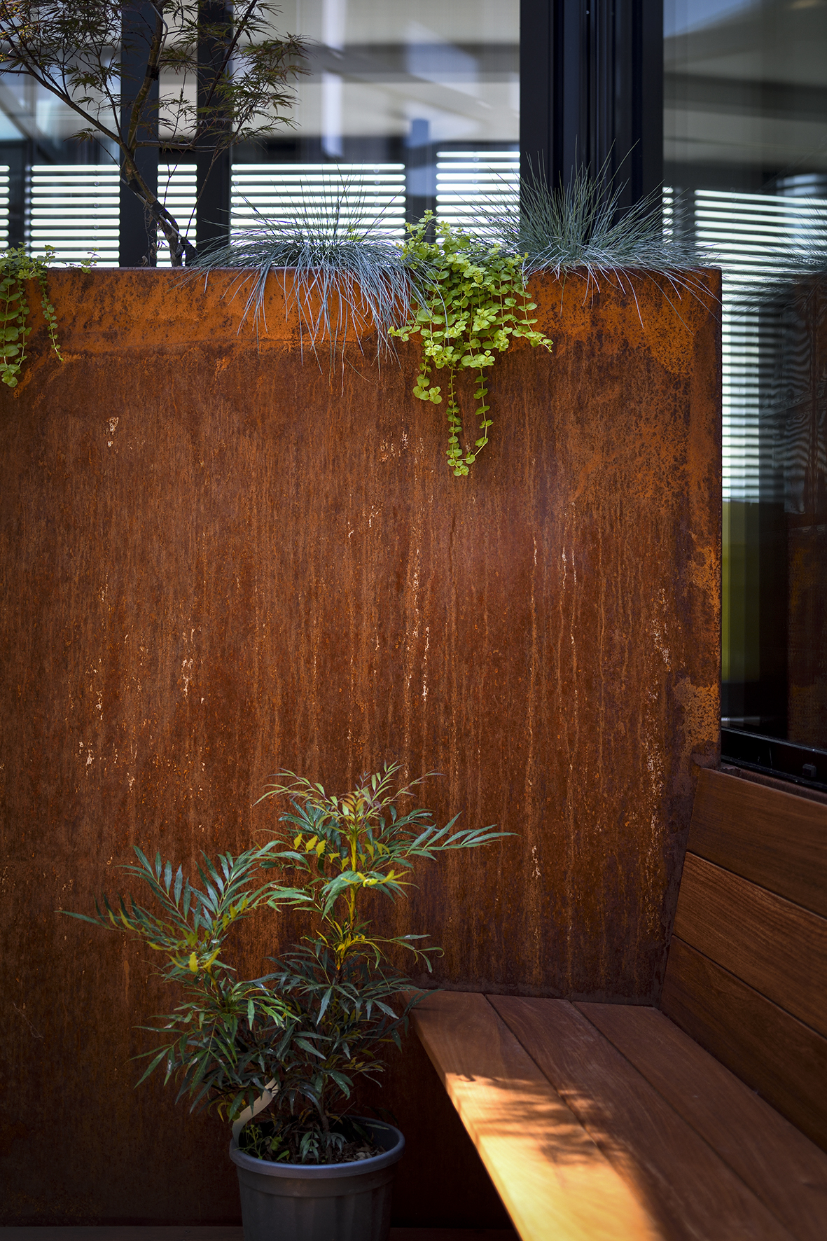 L’architecture est composée d’un volume monolithique qui s’enroule harmonieusement autour d’un patio implanté au cœur du projet. Véritable noyau de vie et de lumière, cette « pièce extérieure » organise les espaces intérieurs et apporte beaucoup de sérénité aux zones de vies.