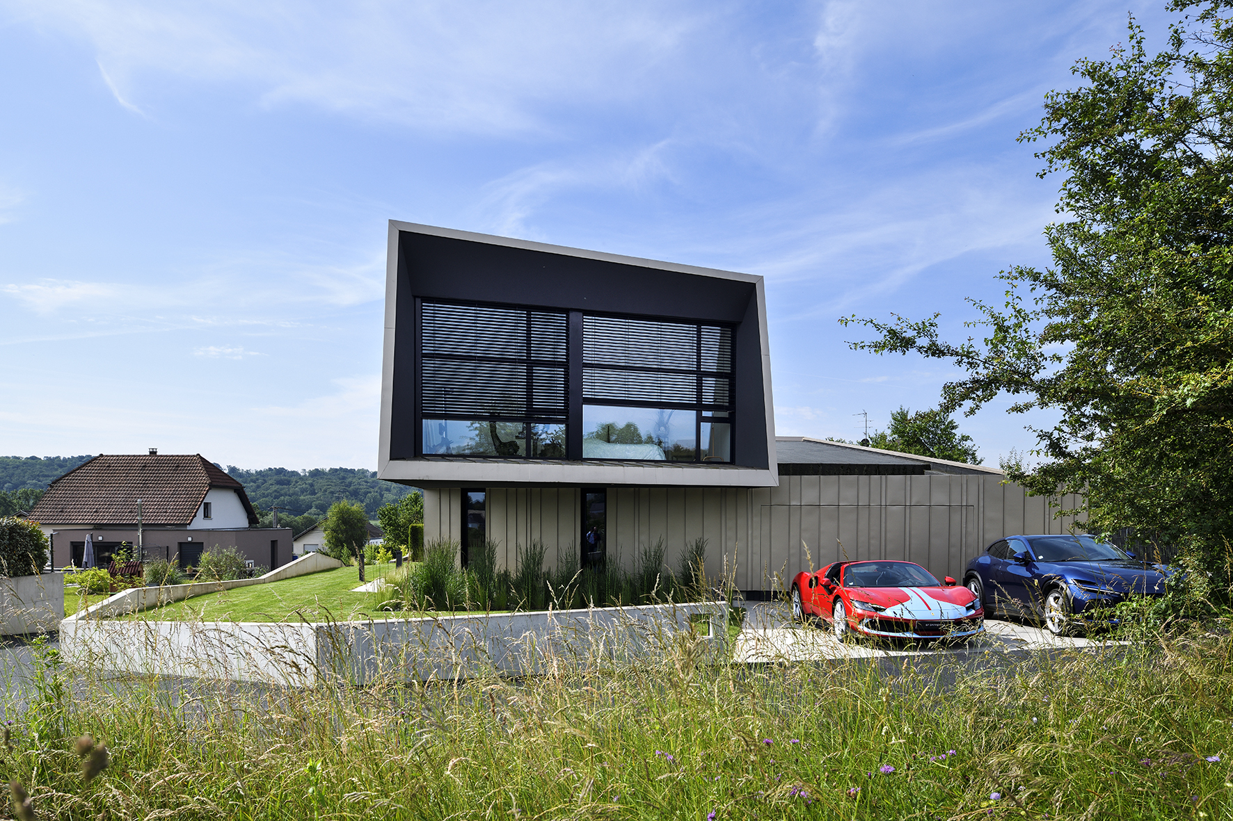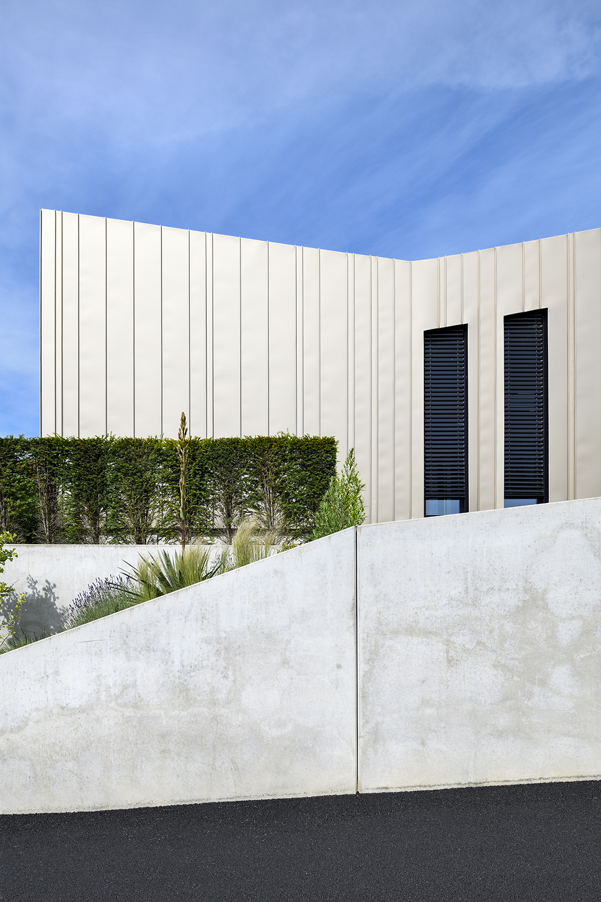 Les lignes du projet s’expriment à travers des arrêtes ciselées et un volume sculpté dans un matériau unique.