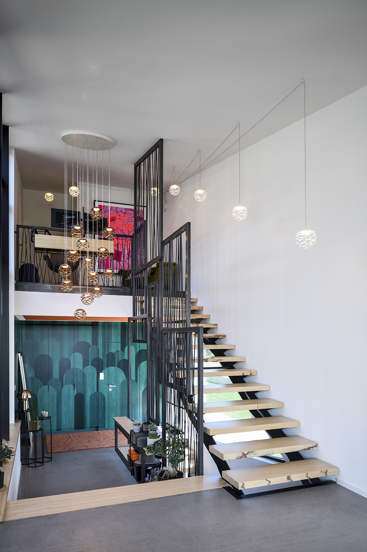 Son architecture atypique s’adapte à son site en pente de façon à caler les niveaux habités sur les altimétries du terrain naturel. Les espaces intérieurs sont distribués par des demi-niveaux successifs qui les interconnectent entre eux en évitant les ruptures franches entre chaque étage construit.